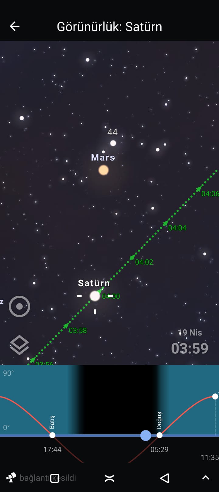 Bu gece (19 Nisan'ı 20 Nisan'a bağlayan gece), Mars ve Satürn gökyüzünde bir "kavuşum" (conjunction) halinde olacak. Bu, iki gezegenin yörünge düzlemlerinde birbirlerine açısal olarak en yakın konuma gelmeleri anlamına gelir. Bu gece aralarındaki açısal mesafe oldukça daralacak ve adeta tek bir yıldız gibi parlayacaklar.