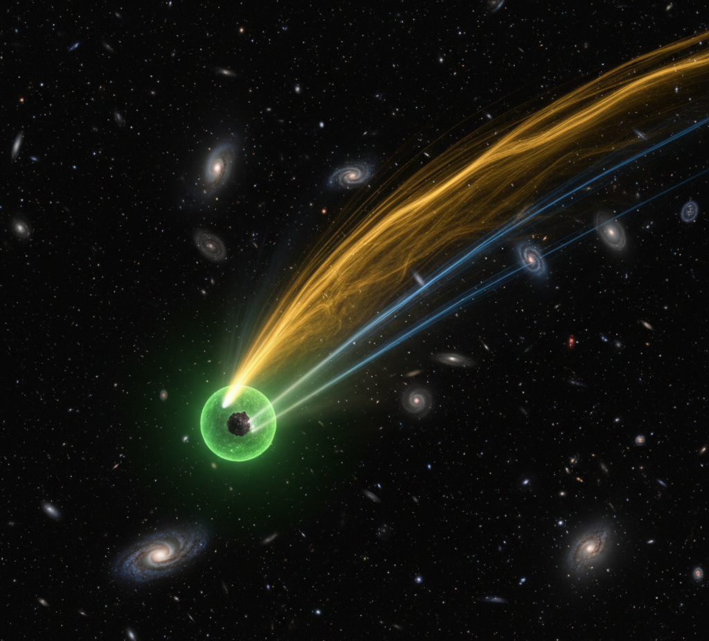2020 yılında keşfedilen ve kuzey yarımkürede çıplak gözle muhteşem bir şov sunan retrograd (ters yörüngeli) bir kuyruklu yıldızdır. İki ayrı kuyruğu (toz ve iyon) çok net bir şekilde fotoğraflanabilmiştir.